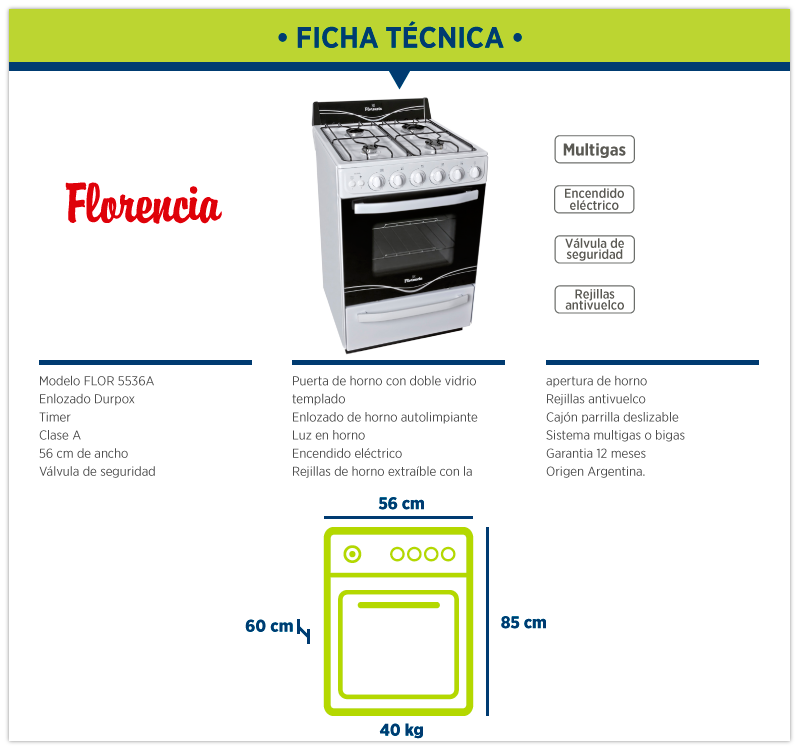 - Cocina Florencia 5536A encendido eléctrico y timer
